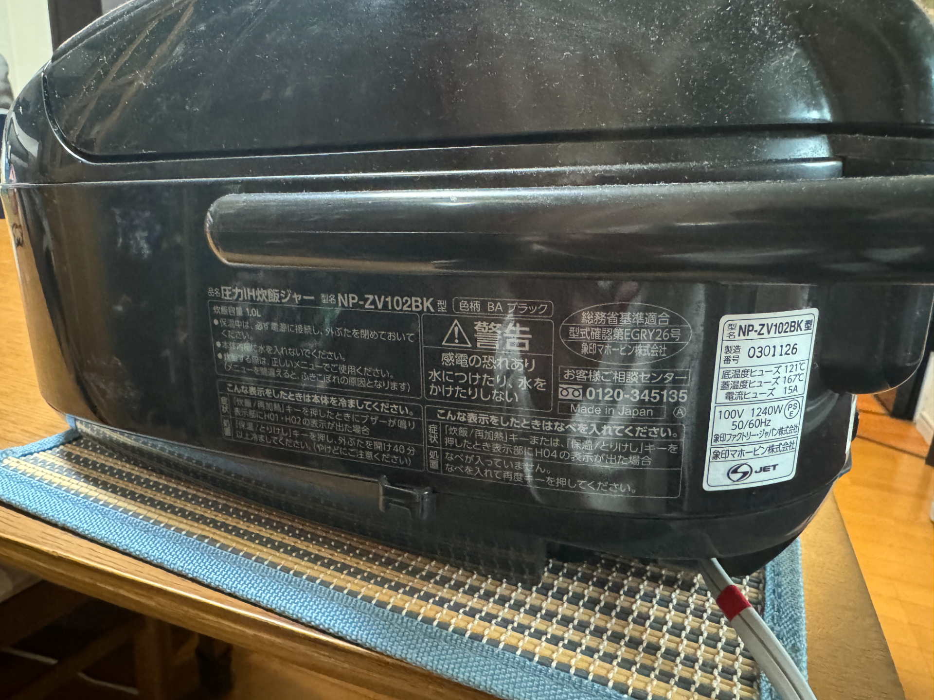使用中の炊飯ジャーの品番やメーカー名がわかる写真、傷などの汚れのアップ