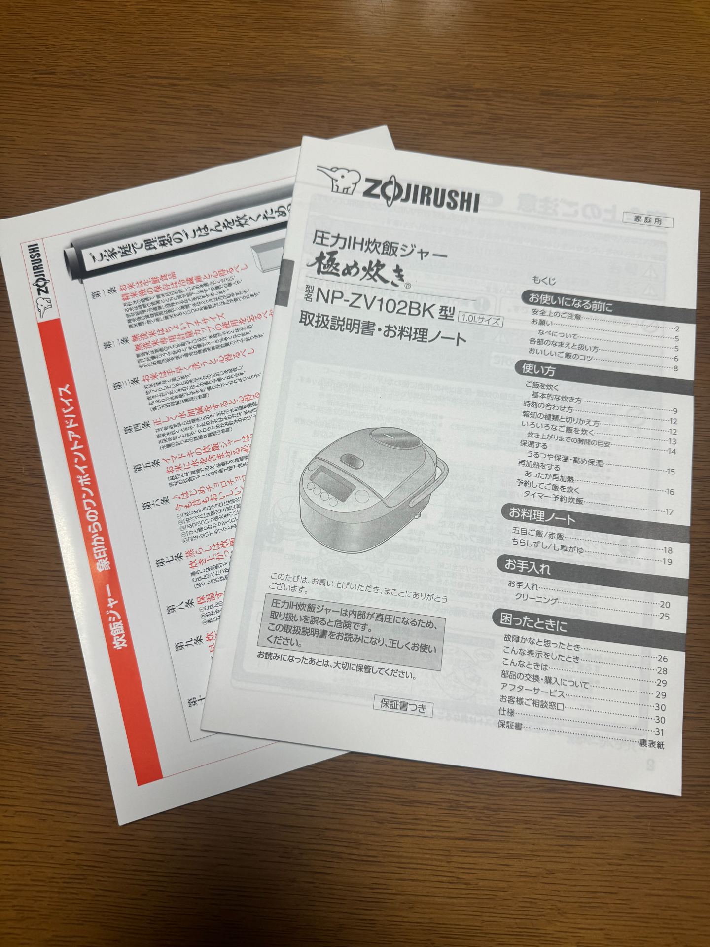 使用中の炊飯ジャーの詳細情報がわかる写真、取説などもあれば